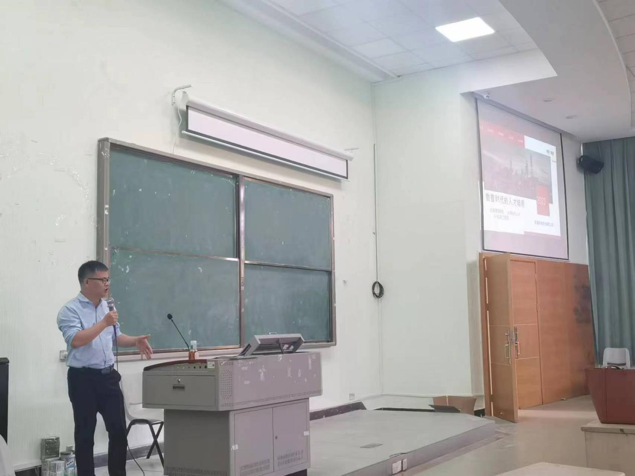 为响应学校产教融合工作的深入开展,加快学院专业课程建设改革的步伐,推进教学过程与生产过程对接,切实提高人才培养质量,2023年3月7日,新道科技股份有限公司教育服务总监魏闯、新道科技股份有限公司产业学院服务总监黄才龙应邀到广州华商学院管理学院为2020级工商管理、市场营销、物流管理专业同学作题为“发展数智科技,共育时代人才”的专题讲座。