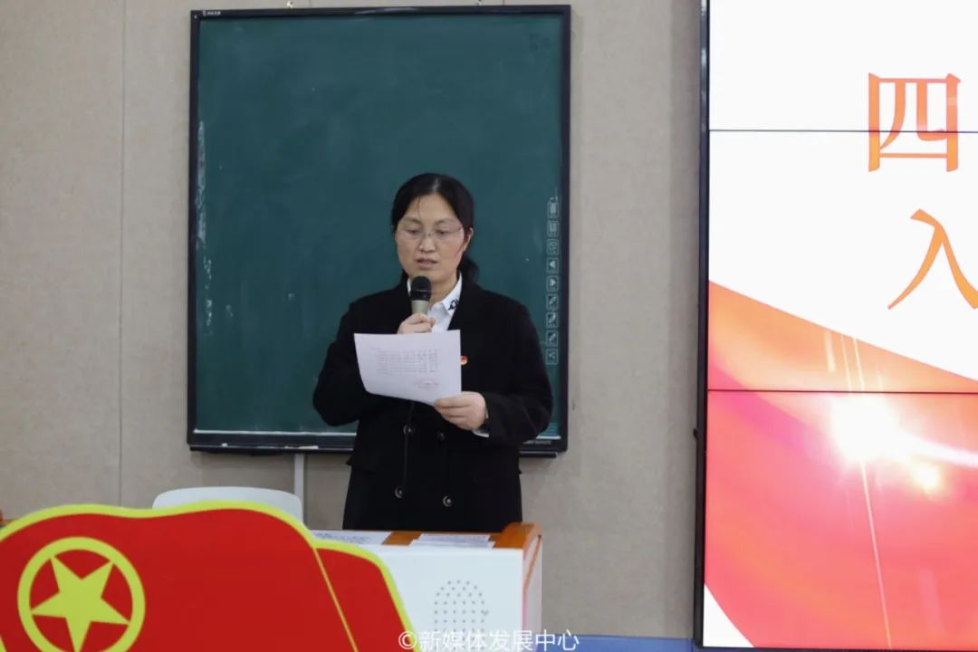 新学员代表郑子懿作表态发言。她表示要珍惜这次宝贵的学习机会,严于律己,在学习中做表率,在生活中当模范,当好党的助手和后备军。并向大家发出三点号召:第一,志存高远,坚定理想信念。我们要认真学习党的先进理论和思想,用党的科学理论武装头脑,在思想中洗礼、在实践锻造中不断增强做中国人的志气、骨气、底气。第二,脚踏实地,坚持学习主线。要珍惜韶华、不负青春,努力学习掌握科学知识,锤炼过硬本领。第三,自觉担责,争当表率模范。党和人民事业发展离不开一代又一代有志青年的拼搏奉献。我们要以青年行动为社会发展做贡献,在学习、工作及其他社会活动中起模范带头作用,让青春在祖国和人民最需要的地方绽放绚丽之花!