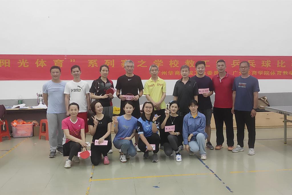 为丰富和活跃学校教职工的业余文化生活,加强乒乓球爱好者之间的交流,由学校体育运动委员会和校工会主办,体育教学部承办的广州华商学院首届“阳光体育”系列教工乒乓球于5月9日圆满落幕。