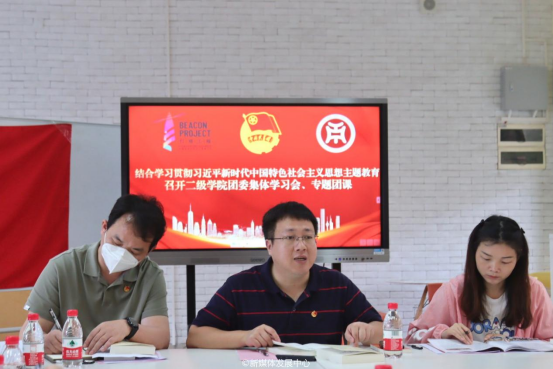 第一议题由陈刚书记领学《习近平新时代中国特色社会主义思想专题摘编》。同时,结合学习贯彻习近平新时代中国特色社会主义思想主题教育,部署我校共青团系统定期集体学习会、专题团课的相关工作。他强调,习近平新时代中国特色社会主义思想是当代中国马克思主义、21世纪马克思主义,是实现中华民族伟大复兴的行动指南。全校各级团组织要迅速行动,把认真学习领会、深入贯彻落实作为当前和今后一个时期首要政治任务,把握华商团员青年的需求和特点,创新开展主题教育的形式,增强对团员青年教育引导的针对性和实效性。