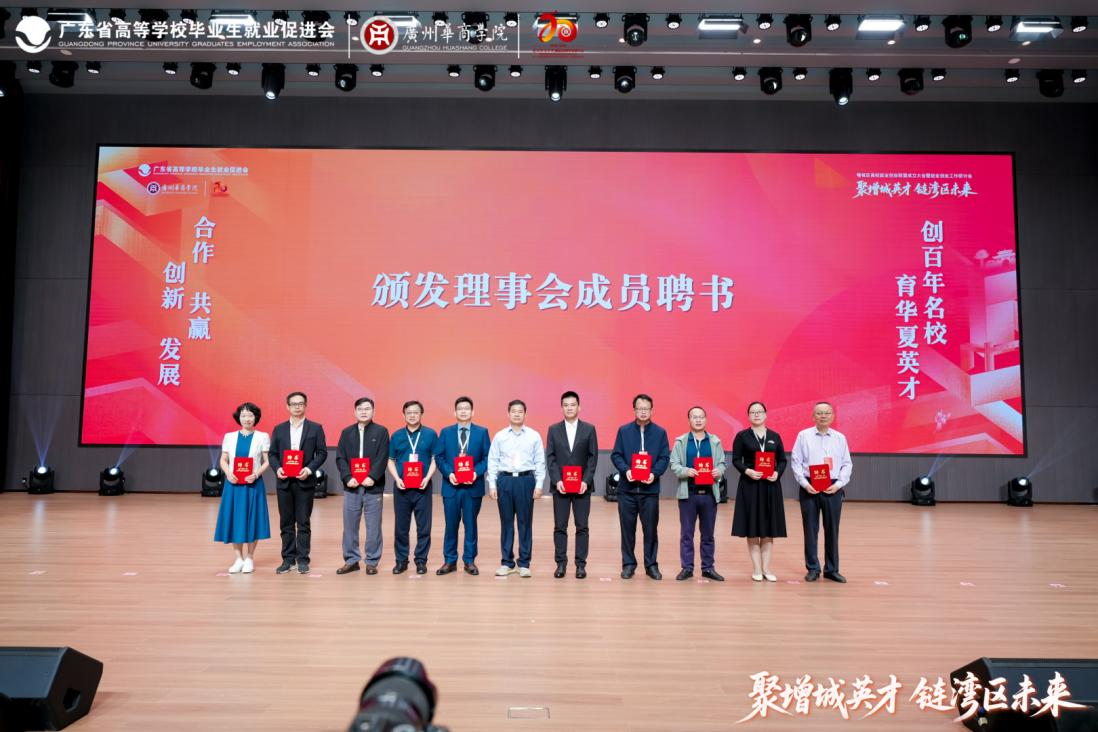 大会现场高朋满座,原广东省教育厅二级巡视员、广东省高等学校毕业生就业促进会(下称“省高就会”)会长邱克楠、常务副会长向丹阳、副会长林伟坚,增城区人力资源和社会保障局就业中心副部长王剑辉,广州华商学院校长胡军、党委书记陈玉欢,以及广州应用科技学院、广州华立学院、广东农工商职业技术学院、广州铁路职业技术学院、广州城市职业学院、广州华立科技职业学院、广州珠江职业技术学院、广州松田职业学院以及广州华商职业学院等9所联盟成员院校代表,暨南大学、南方医科大学等13所兄弟院校代表,增城区创新创业协会等14家行业企业代表出席本次大会。