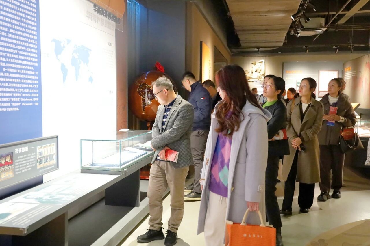会后,参会嘉宾在王文忠主任陪同下参观我校世界华商博览馆及校史馆。嘉宾们深入了解华商群体融通中外、报效家国的奋斗历程,感受其独特文化价值与精神力量。在校史馆,嘉宾们了解了我校的发展历程与办学成果。