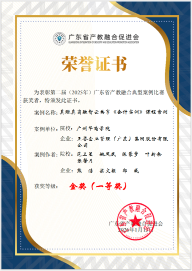 近日,2025年广东省产教融合典型案例比赛举行。在这场由广东省发展和改革委员会指导、广东省产教融合促进会主办,以“共融·共创·共未来——构建湾区产教融合新生态”为主题的省级赛事中,广州华商学院凭借扎实的实践基础与创新模式脱颖而出,此前斩获的优异战绩再添荣光,成为我校产教融合高质量发展的有力见证。