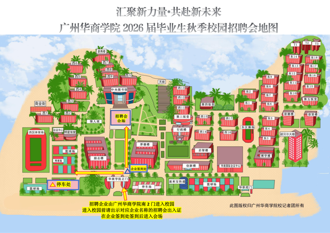招聘会当天,参会企业需凭【招聘会出入证】进出校园,听从安保人员的指引,到规定地点停车;如步行入校,也需凭【招聘会出入证】进出学校。【招聘会出入证】仅供参会企业使用,请参会企业留意邮箱及参会企业咨询微信群查收。