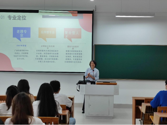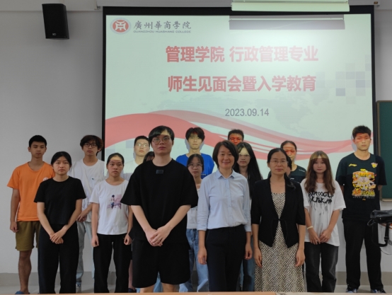 人生的序章,始于初秋,从远方而来,跨越山海,奔赴下一场诗与远方。一年一度的开学季来临,广州华商学院管理学院迎来了又一批新生,为欢迎2023级行政管理专业的新生,让新生们对专业有更深入的了解,管理学院公共管理系于2023年9月14日下午15:30在广州华商学院四会校区16号楼504教室召开了行政管理专业师生见面暨入学专业教育会。会议由公共管理系副主任张秀丽老师主持,行政管理专业姚瑶、张兰两位专任教师、2022级行政管理专业刘宇杰(2023级行政管理专业助理班主任)以及全体2023级行政管理专业新生参加。