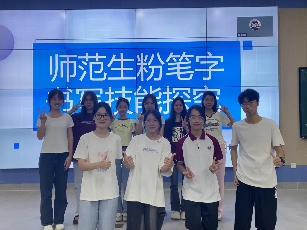 由项目负责人叶美琪同学进行项目汇报。项目成员针对师范生所面临的书写技能的不重视问题,提出此次项目答辩的研究目的及意义,并深刻阐述了选题内容、研究视角、研究思路三大创新点。