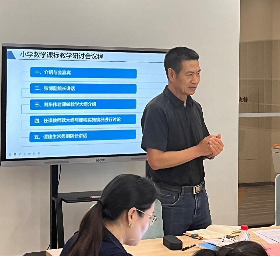 会议伊始,教师教育学院张博副院长表示,要加强高校和一线小学的合作,锻炼学生的师范实操技能;要求小学数学课标课程组要做好教研活动,将一线的新的教育思想和实际教学经验带到课堂中。在教学活动中要根据学生实际情况做好课标学习的教学设计,积极调动学生的上课积极性。