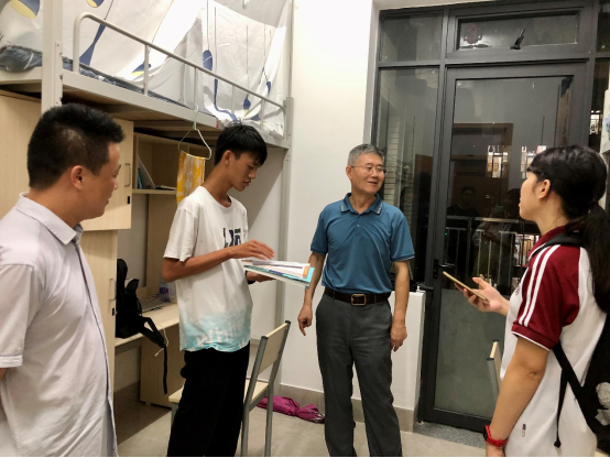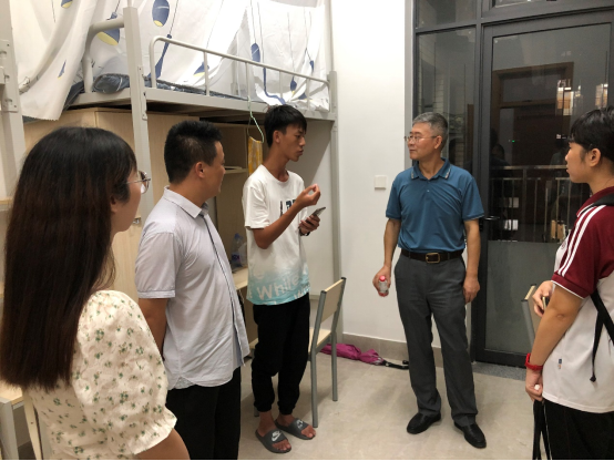 会议结束后,秦陇一副院长、教学秘书梁林海老师以及辅导员魏巍老师前往大一新生的宿舍进行走访。在走访过程中,了解了新同学目前在生活中遇到的问题,关心他们是否适应大学生活,并与同学们展开了深入的交流。