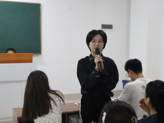 2022级人力资源管理专业周芷伊同学用自身的成功经验来鼓励同学们多参加各种学科竞赛,提出要保持想象力和创造力,正视自己,在团队中找准自己的定位,充分利用身边的资源,不断探索不断尝试,拓宽自己的眼界。