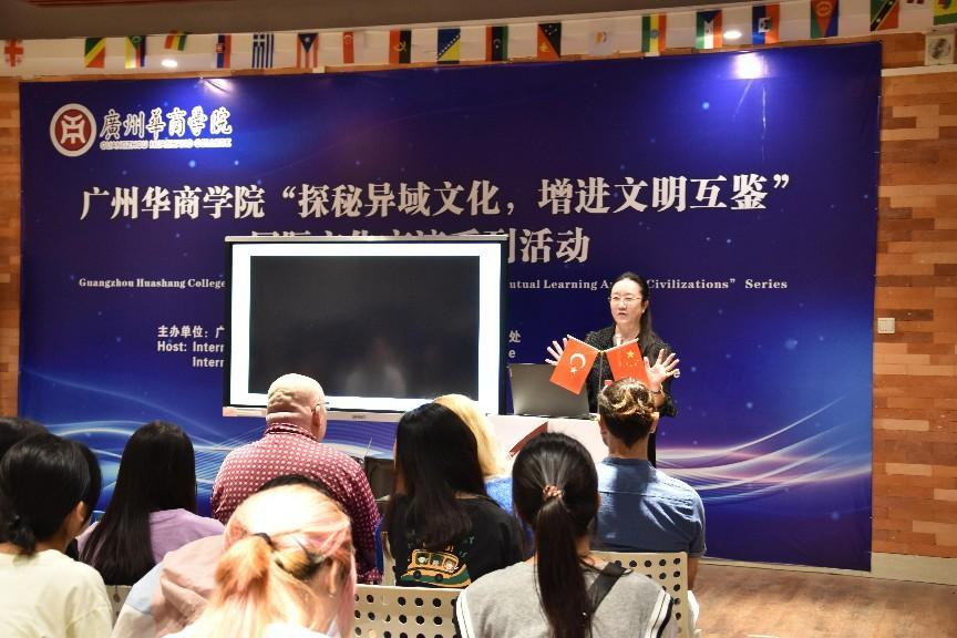 本次分享会由土耳其籍教师Begum Firinci担任主讲嘉宾,广州华商学院国际学院院长回雁雁、国际学院党支部书记兼辅导员杨李军、美国籍教师John Jung、巴基斯坦籍教师Aneela Qadir以及来自国际学院、华职国际学院、健康医学院、外国语学院、文学院的50多名大学生参加了分享会。