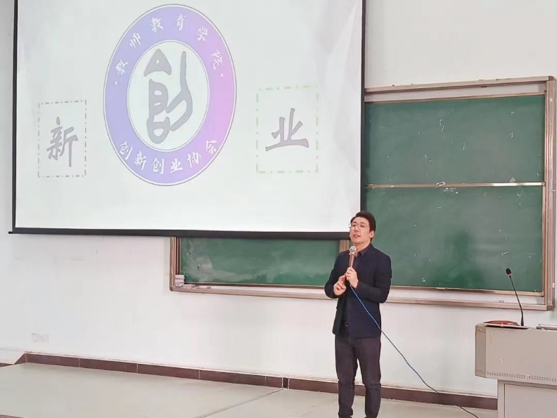 讲座伊始,赵中宝老师借教师教育学院创新创业协会会徽中繁体的“创”字,巧妙地阐述了“创新”“创业”的概念。