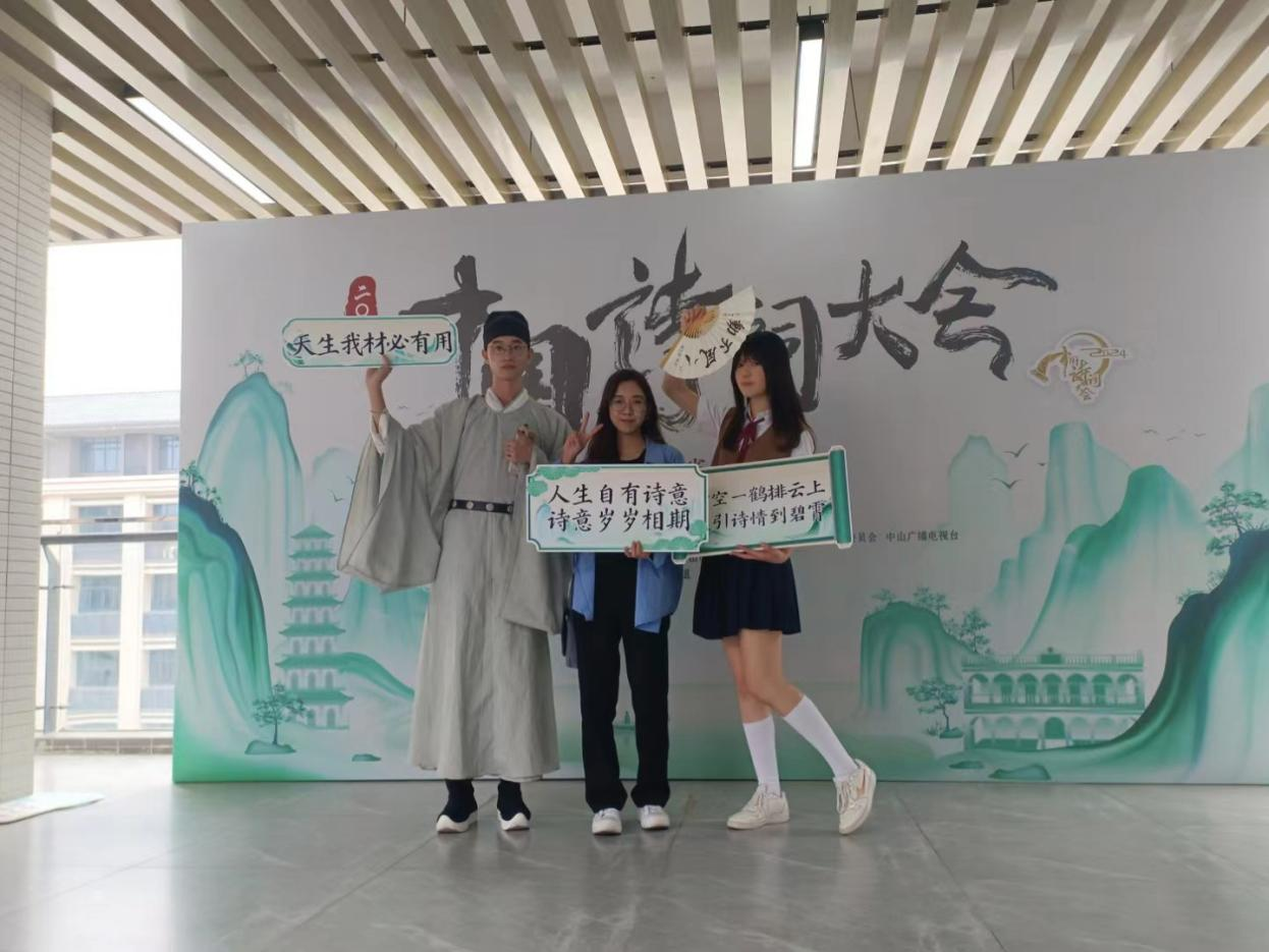 经过广东赛区的层层选拔,郑镇鑫同学从广东赛区200强中脱颖而出,于2023年12月收到中央广播电视总台《2024中国诗词大会》节目录制的邀请,作为线上百人团选手全程参与了2024年1月10期节目的录制。
