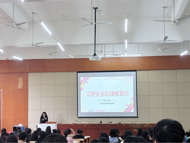 3月5日下午,外国语学院在广州校区励志楼C208召开2024年文明安全纪律教育月动员大会,党委副书记兼副院长陈少鸿老师、学工办副主任何顺发老师、辅导员张艳娥老师、江嘉丁老师及兼职辅导员李怡静、陈冬梅等出席本次会议。