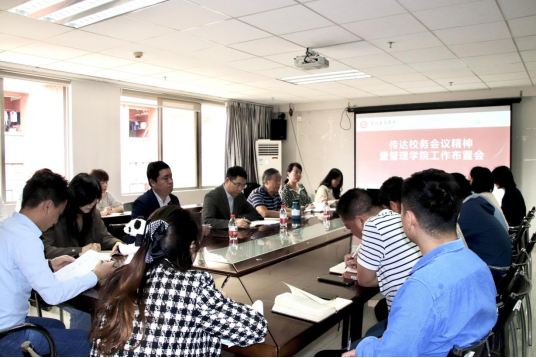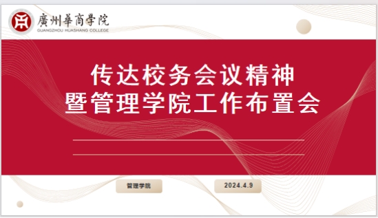 4月9日下午,广州华商学院管理学院在广州校区行政楼512会议室举行传达校务会议精神暨管理学院工作布置会。会议由李招忠院长主持,管理学院院领导、系领导、行政办公室主任、教学秘书、双创秘书、产教融合专员、辅导员及教师代表出席了会议。