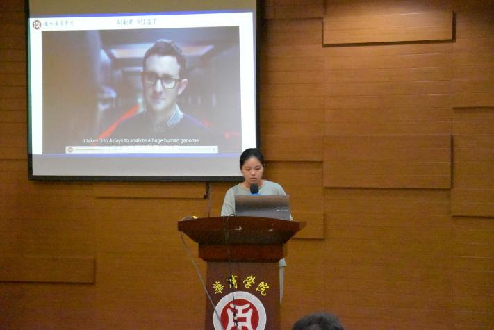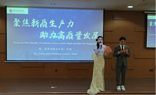为了让大学生了解新质生产力的内涵、发展及影响力,用英语讲好中国发展新质生产力的故事,自2024年4月以来,广州华商学院国际学院联合国际交流与合作处举办“聚焦新质生产力,助力高质量发展”第二届英语配音大赛,经选手准备配音视频、初赛遴选,2024年5月28日,决赛在广州校区图书馆学术报告厅举行。国际交流与合作处处长王文忠、国际学院院长回雁雁、外国语学院副院长杜秀君、国际学院直属党支部书记杨李军、加纳籍教师Frank Larbi博士、巴基斯坦籍教师Aneela Qadir博士以及来自国际学院、外国语学院、文学院、健康医学院、管理学院、人工智能学院、经济贸易学院、教师教育学院的120多位大学生现场观摩了决赛。