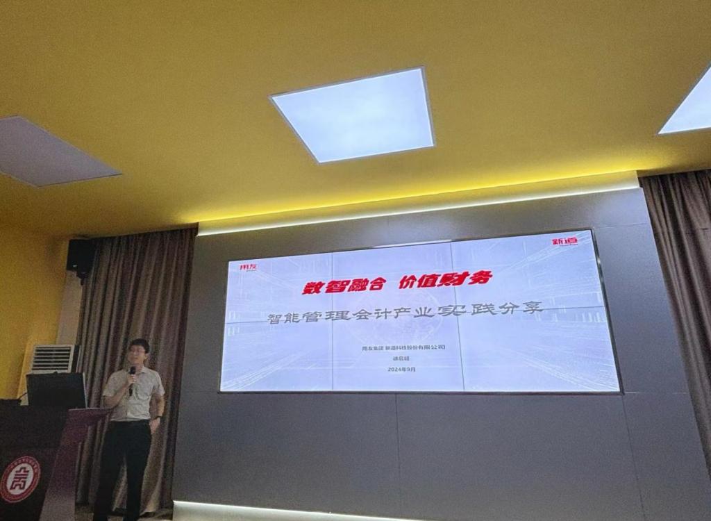 最后,产业学院企业教师代表,用友集团新道科技股份有限公司教学服务总监徐启超先生为大家带来了精彩的产业实践分享。