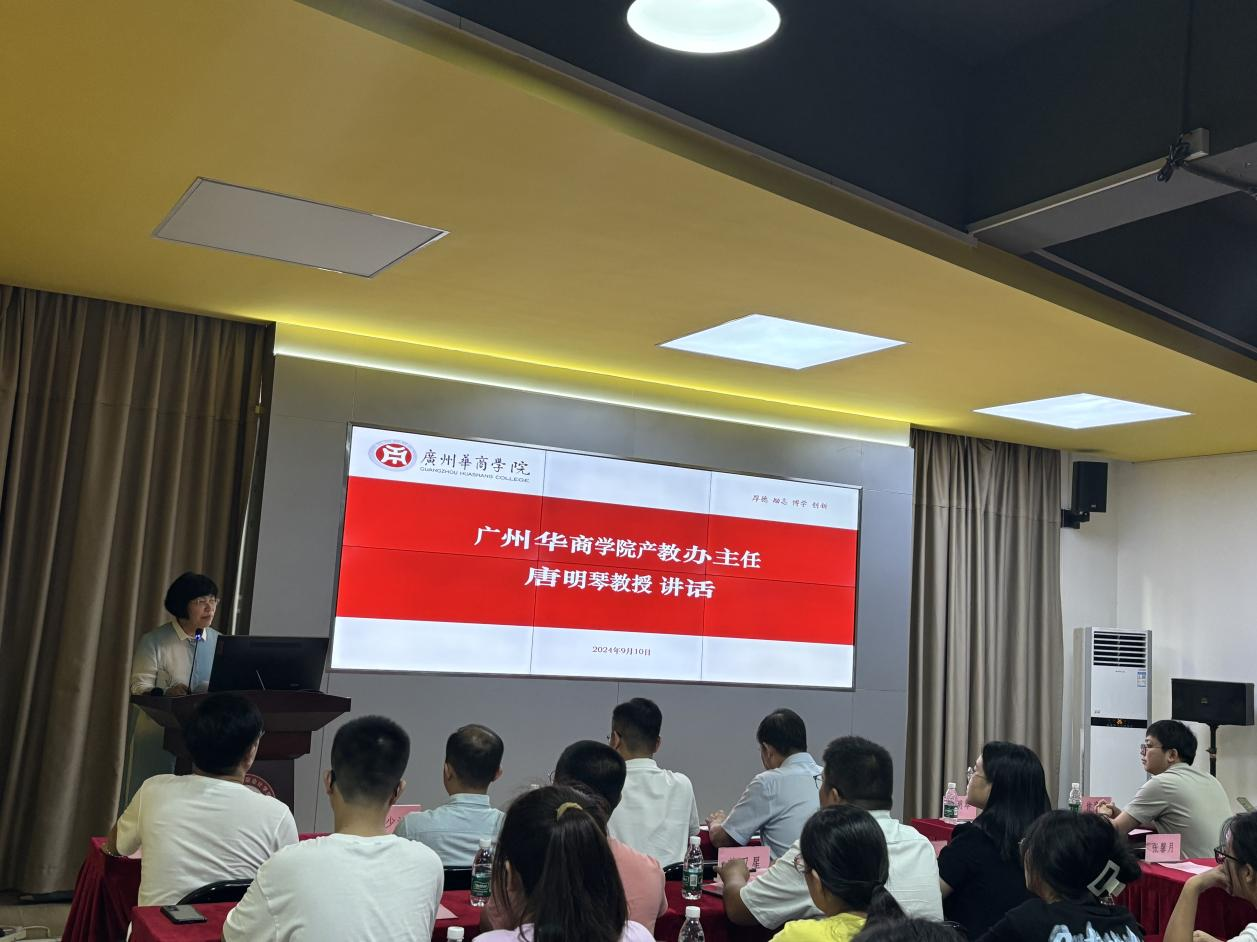 随后,广州华商学院产教办主任唐明琴教授讲话。唐明琴教授强调,智能管理会计产业班是广州华商学院第一个示范班级,学校高度重视并给予支持。期望同学们能够秉持勤勉向学的态度,积极将大数据前沿技术与会计专业知识深度融合。充分借助这一零距离接触的优质平台,脚踏实地、稳扎稳打地掌握会计知识,在持续的探索与实践中砥砺前行,不断开拓进取,勇攀知识的高峰。