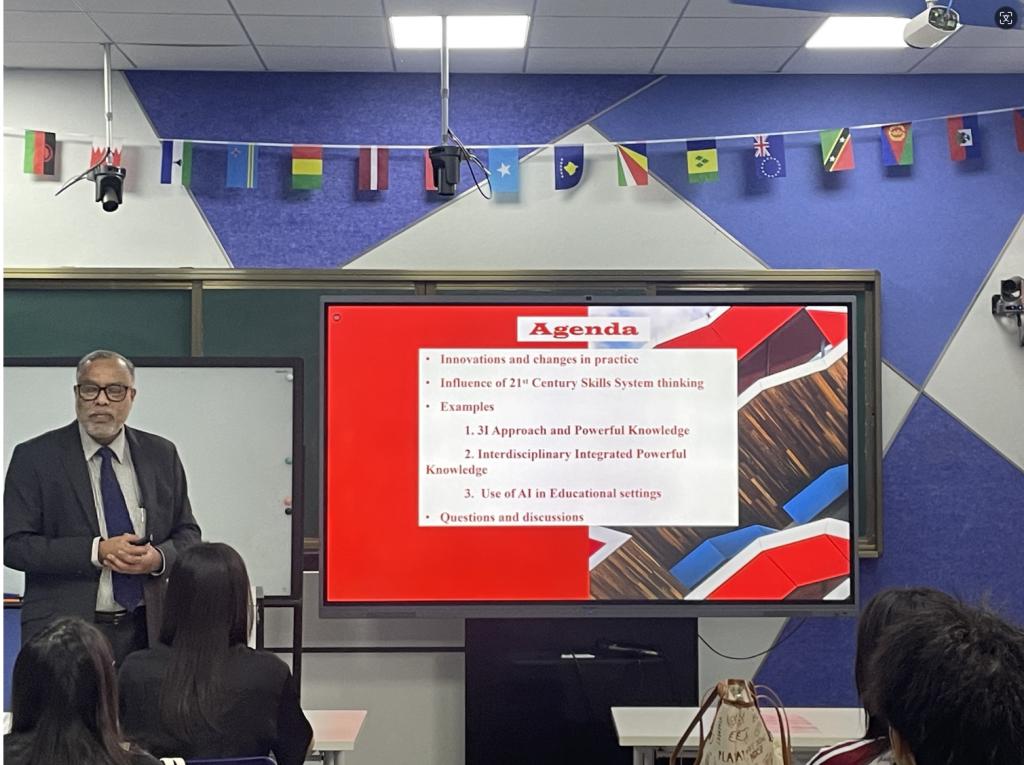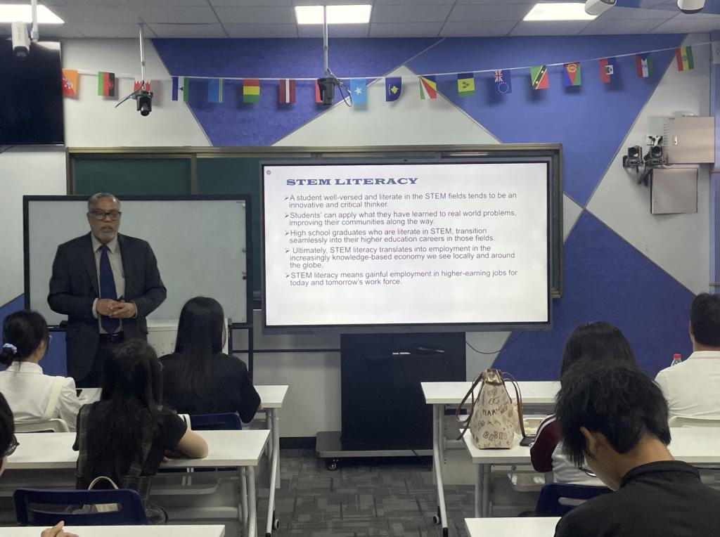在信息科技突飞猛进的当下,为了让大学生认识到构建跨学科知识体系的重要性,了解最新的STEM(Science科学、Technology技术、Engineering工程、Mathematics数学)教育研究成果,2024年10月8日,广州华商学院国际学院与国际交流与合作处邀请墨尔本拉筹伯大学(La Trobe University Melbourne)的资深STEM学者Premnadh M Kurup博士来校开设“构建强大的知识体系以应对现实的多重变化 Cocreating Powerful Knowledge for Changes in Practice”讲座。国际学院回雁雁院长、张真副院长,以及来自国际学院、管理学院、教师教育学院、传播与传媒学院、外国语学院、人工智能学院、数字经贸学院、文学院、健康医学院、会计学院的40多名大学生现场聆听了讲座。