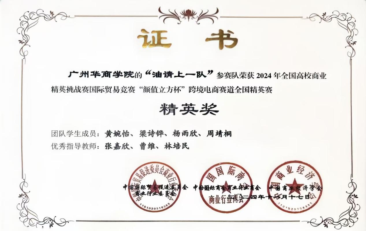 近日,2024年全国高校商业精英挑战赛国际贸易竞赛跨境电商赛道全国精英赛在广东省东莞市圆满落幕。广州华商学院数字经贸学院参赛队伍在全国精英赛中表现卓越,斩获精英赛冠军和一等奖等多项殊荣。此次竞赛是国际经贸教育领域的重要赛事,对学生专业认识和实践能力的提升具有重要意义。