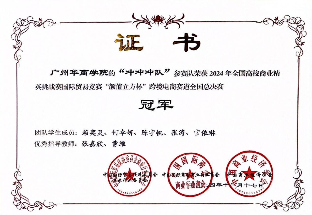 广州华商学院数字经贸学院自成立以来,始终致力于培养具备国际视野、创新精神和实践能力的跨境电商人才。通过不断优化课程设置、加强实践教学、深化校企合作,学院在跨境电商领域人才培养取得了显著的成绩。此次在全国高校商业精英挑战赛国际贸易竞赛跨境电商赛道全国精英赛中荣获全国冠军和一等奖等多项殊荣,充分证明了数字经贸学院在跨境电商人才培养方面的卓越成果。展望未来,广州华商学院数字经贸学院将继续秉承“创新、实践、卓越”的教育理念,不断提升学生的专业素养和实践能力,为我国数字经贸相关行业的发展注入新的活力。