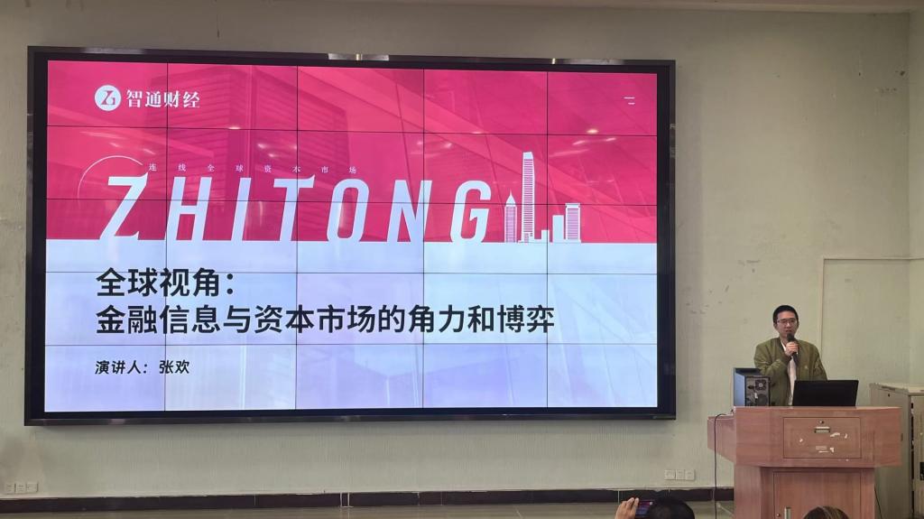 2024年11月5日,智通财经CEO张欢先生一行受邀请来访广州华商学院,为华商学子开展《全球视角:金融信息与资本市场的角力和博弈》主题讲座,旨在让同学们了解金融信息和国际金融市场的动态。