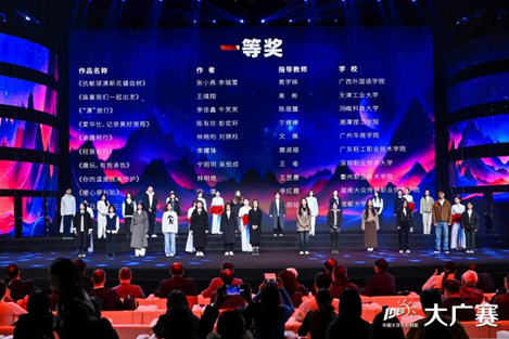 2024年11月23日,第16届大广赛学科竞赛成果展示盛典在北京东亿国际传媒产业园演艺大楼举行。教育部原副部长、中国高等教育学会原会长周远清,全国人大代表、中国戏剧家协会副主席、国家一级演员、再芬黄梅艺术剧院院长韩再芬,中国高等教育学会副会长、教育部高教司原司长张大良,教育部学生服务与素质发展中心党委书记、主任刘玉光,中国高等院校影视学会副会长兼秘书长张国涛等70余位嘉宾出席颁奖盛典活动。30位命题单位嘉宾,以及来自全国301所院校的近1700名师生到场参会。