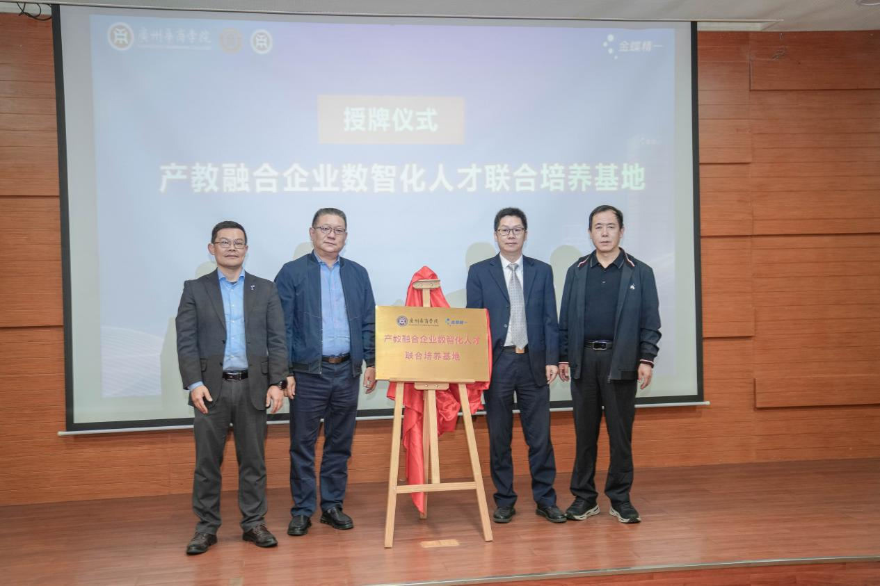 随后,广州华商学院与金蝶精一信息科技服务有限公司共同为产教融合企业数智化人才联合培养基地授牌。这一举措旨在通过深化校企合作,扩大就业创业、提升人才培养质量、推进经济转型升级、培育发展新动能。
