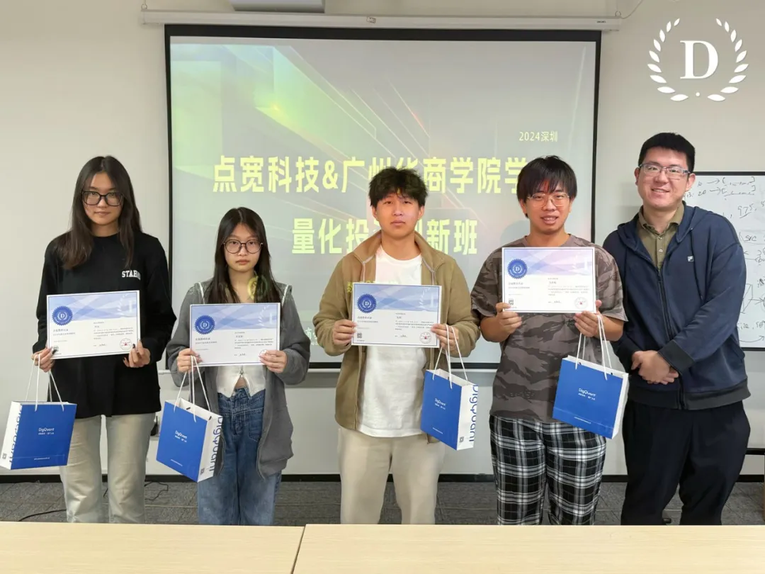 2024年11月24日-11月30日,由点宽科技与广州华商学院数字金融学院合作的首届量化投资创新班在深圳点宽网络科技有限公司顺利举办。本次创新班旨在通过校企合作模式,为数字金融学院2022级金融科技、金融工程及金融学专业的学生提供一个结合理论与实践的学习平台,全面提升他们在金融与科技交叉领域的综合能力。
