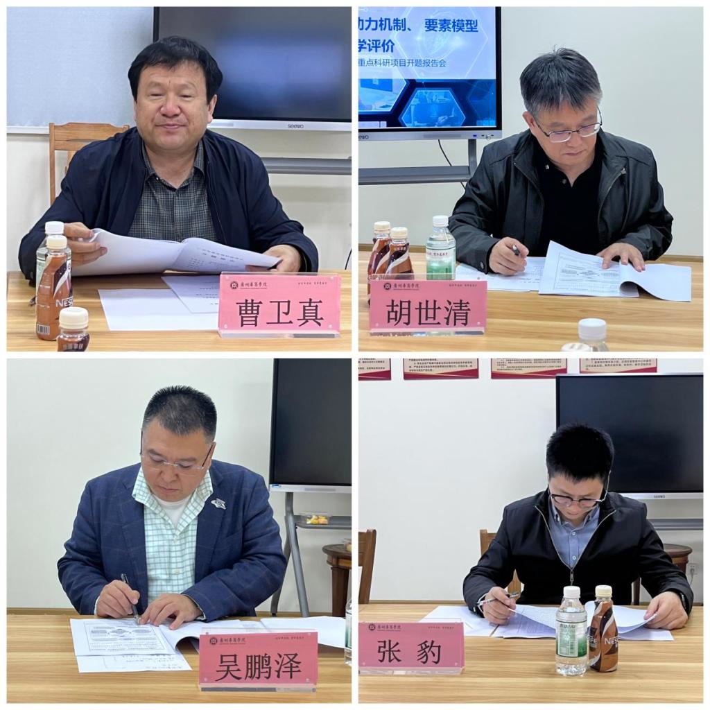 在开题报告会上,曹卫真教授首先对课题题目进行深度解析和研究问题聚焦,详细介绍了课题研究框架和实施方案等。吴鹏泽教授在发言中强调了课题研究高校数字化转型的动力机制、构建多维度的要素模型以及采用大数据和AI工具对教学进行评价的创新性意义。胡世清教授指出,在推进数字化转型过程中,不仅需要关注教师的“教”,也需要关注学生的“学”,更要关注教研和教学管理的转型转变,这是课题研究的意义和价值所在。张豹教授认为,课题的研究方法多元,有利于获得客观、真实和丰富的数据,有助于课题研究目标的达成。