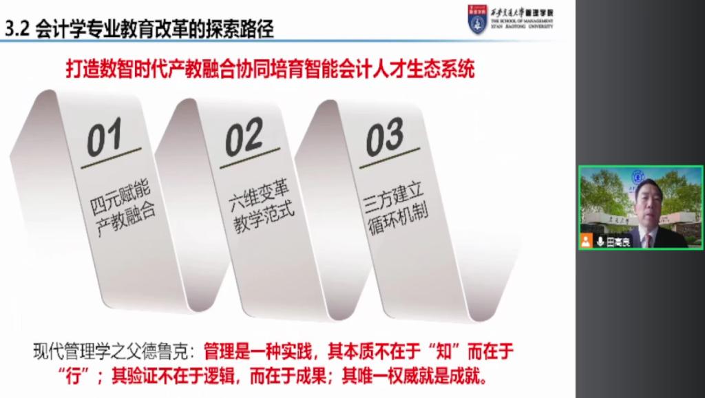 (西安交通大学管理学院副院长、教育部高等学校会计学专业教指委委员田高良教授作线上报告)