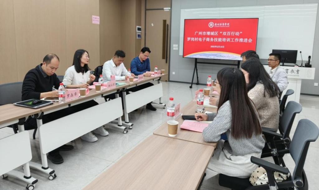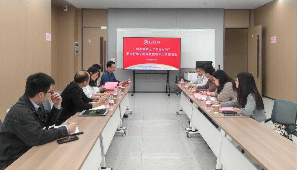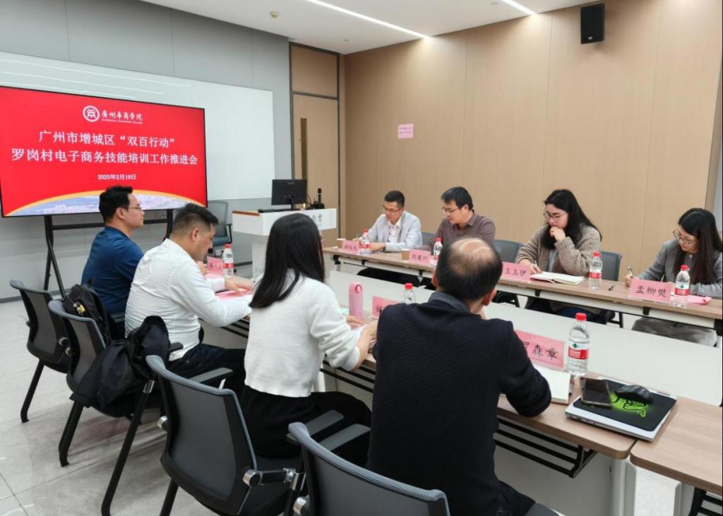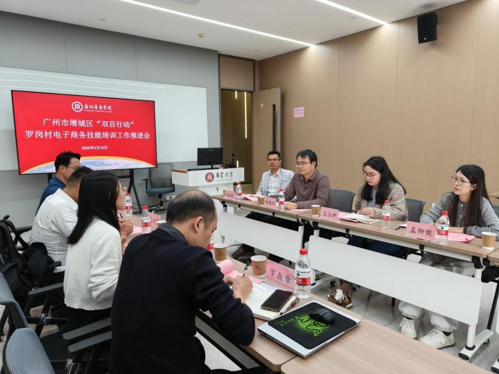 2025年2月19日,广州市增城区“双百行动”罗岗村电子商务技能培训工作推进会在广州华商学院举行。此次推进会在前期对罗岗村需求的深入调研以及多次座谈的基础上召开,旨在深入贯彻落实习近平总书记关于全面推进乡村振兴和区域协调发展的重要论述精神,积极响应省委、市委、区委关于实施“百千万工程”的部署要求,进一步统筹全域高质量协调发展,推动“百县千镇万村高质量发展工程”的联动发展,构建区域内帮扶机制。