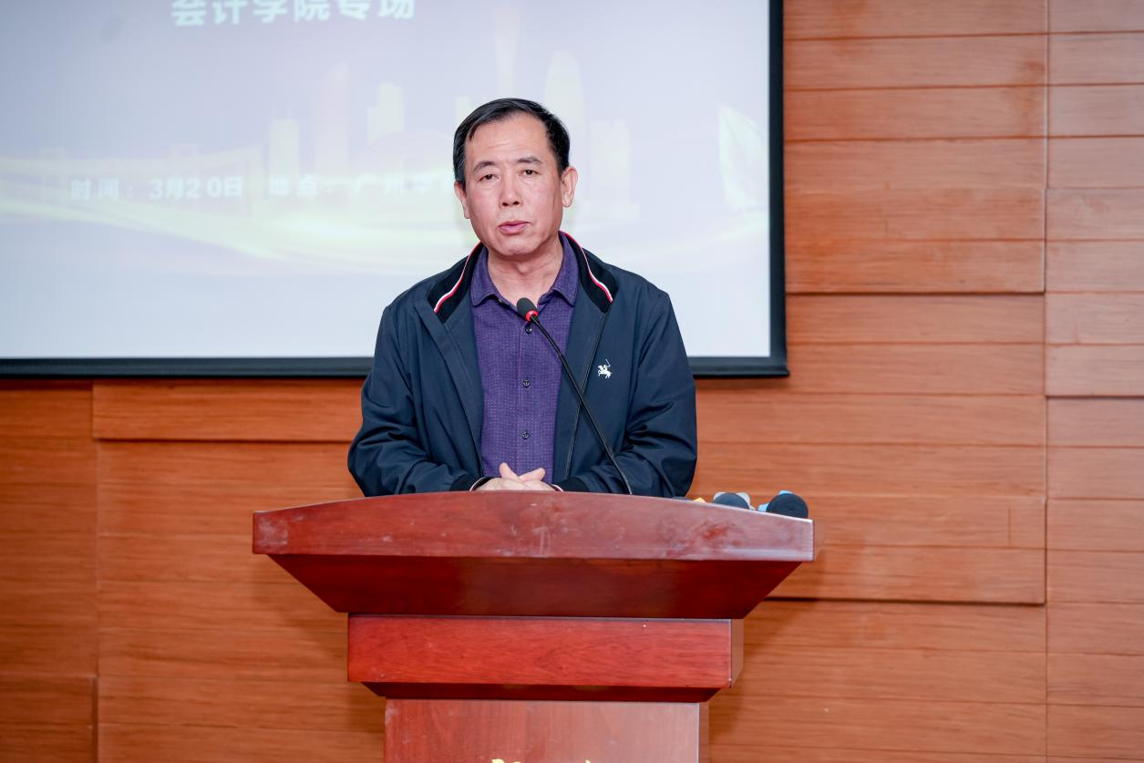 会议伊始,广州华商学院会计学院院长姚凤民致开场辞。姚院长以“为什么成功的都是企业家呢?”为切入,纵观商业史,真正的成功者绝非偶然——他们以创新为刃,以韧性为盾,在变革中锚定方向,更以社会责任为内核,将商业价值与社会价值深度融合。面对新质生产力的浪潮,人才培养更需破局。传统教育模式正遭遇挑战:技术迭代加速,产业边界模糊,单一技能已难应对复杂生态。未来的竞争,是“科技硬实力”与“人文软实力”的共生竞争。