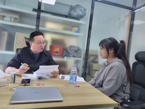 走访期间,企业安排了专场招聘面试。人工智能学院22级计算机科学与技术、软件工程等专业的6名学生参加了现场面试。辅导员王怡时老师全程指导学生面试技巧,鼓励同学们自信展示专业能力。面试结束后,王老师与同学们深入交流心得,建议大家在学好专业知识的同时,积极参与学科竞赛和项目实践,积累实战经验。