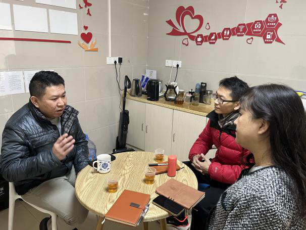 上午,外国语学院副院长何顺发、项目负责人郭宇洁以及辅导员孔翊先一同前往清燕社区进行走访与交流。清燕社区居委会书记邓镜波同志对“晚风学堂”项目的筹备表示欢迎,并介绍了社区青少年的教育现状和课后辅导需求。外国语学院一行实地考察了社区活动场地,包括社区服务站、青少年活动中心等潜在的活动场所,对场地的布局、设施配备以及周边环境进行了全面了解,并就场地的合理利用与社区工作人员进行了深入探讨。