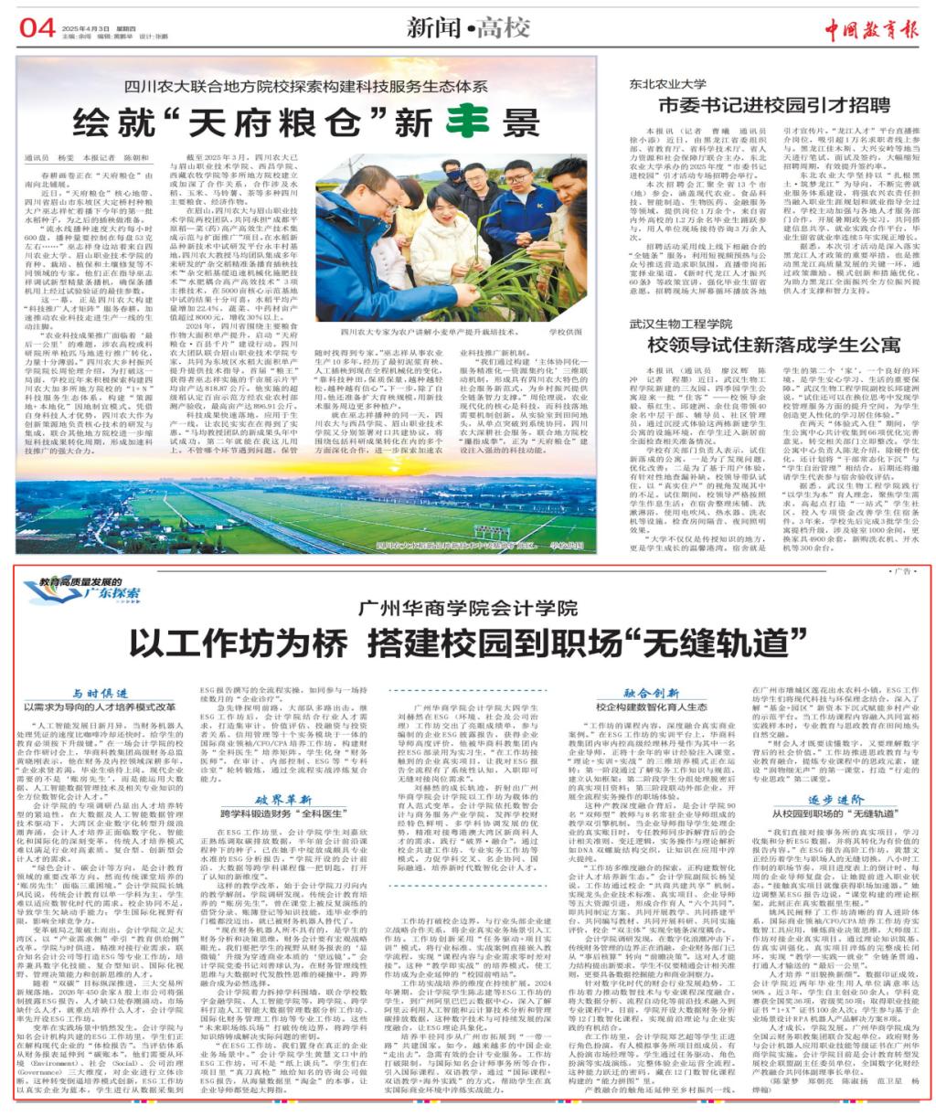 近日,广州华商学院会计学院以工作坊为载体的产教融合育人模式获《中国教育报》专题报道,成为全国高校数智化会计人才培养的标杆案例之一。