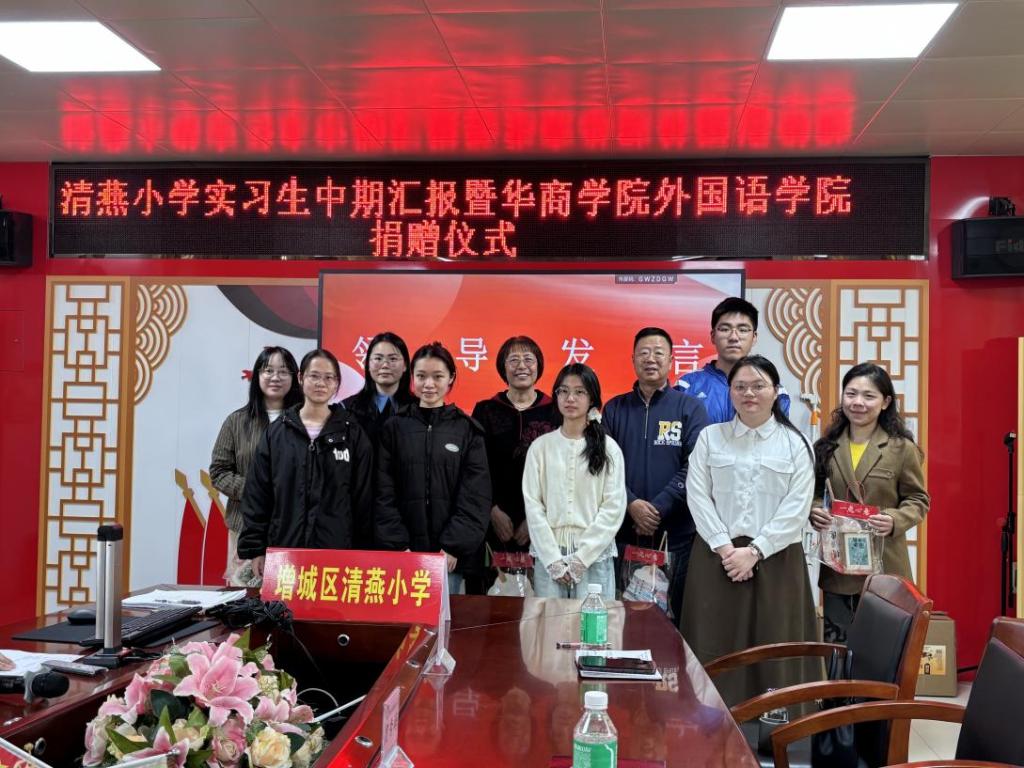 2025年4月3日下午,广州华商学院外国语学院一行前往增城区清燕小学实习基地进行走访交流。清燕小学副校长黄叔清、党务专干蒋建娟、英语科科长郑群花和实习指导教师们,以及外国语学院教学院长杜秀君、翻译系主任贾秀海、英语系副主任谢瑶、苏恒老师、肖茜老师和本学期实习生共同参与了此次活动。