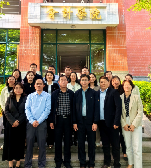2025年4月3日下午,广州华商学院会计学院与广东财经大学财政税务学院财政系党支部、税务系党支部在会计学院会议室开展联合党日活动。广东财经大学财政税务学院党委书记刘文基一行12人、会计学院院长姚凤民等全院班子成员参加活动,活动由姚凤民院长主持。本次活动通过加强双方院系的党建交流与合作,共同推动财税专业建设及人才培养。