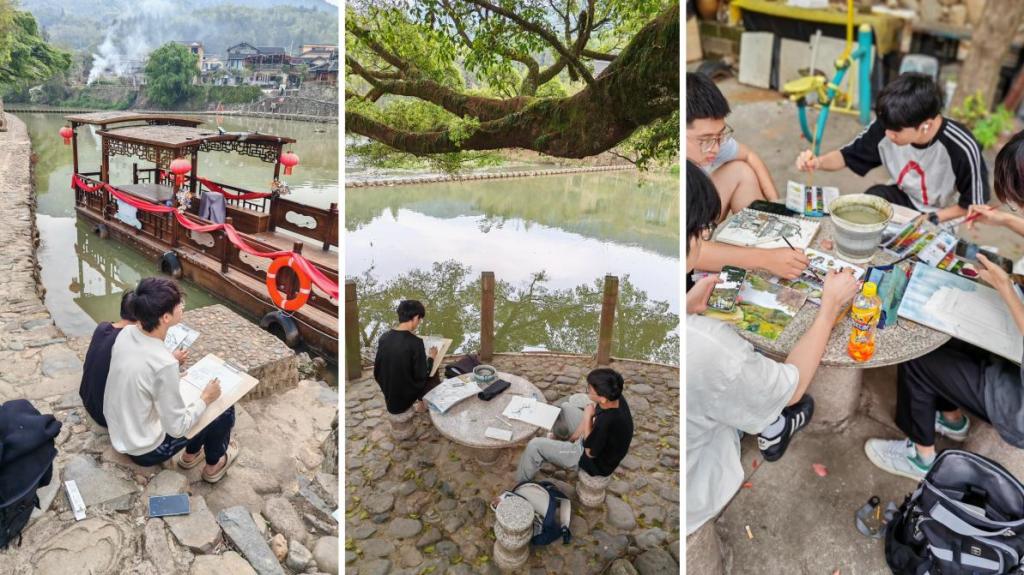 2025年4月7日,广州华商学院传播与传媒学院视频传播系2024级动画(产教)1、2、3班师生启程前往福建漳州云水谣古镇,开展为期两周的《设计采风》课程实践。本次采风由视频传播系侯兆丰副教授、胡娜老师、许冰芸老师共同担任指导教师,带领学生深入闽南文化腹地,探寻传统与自然的艺术融合。
