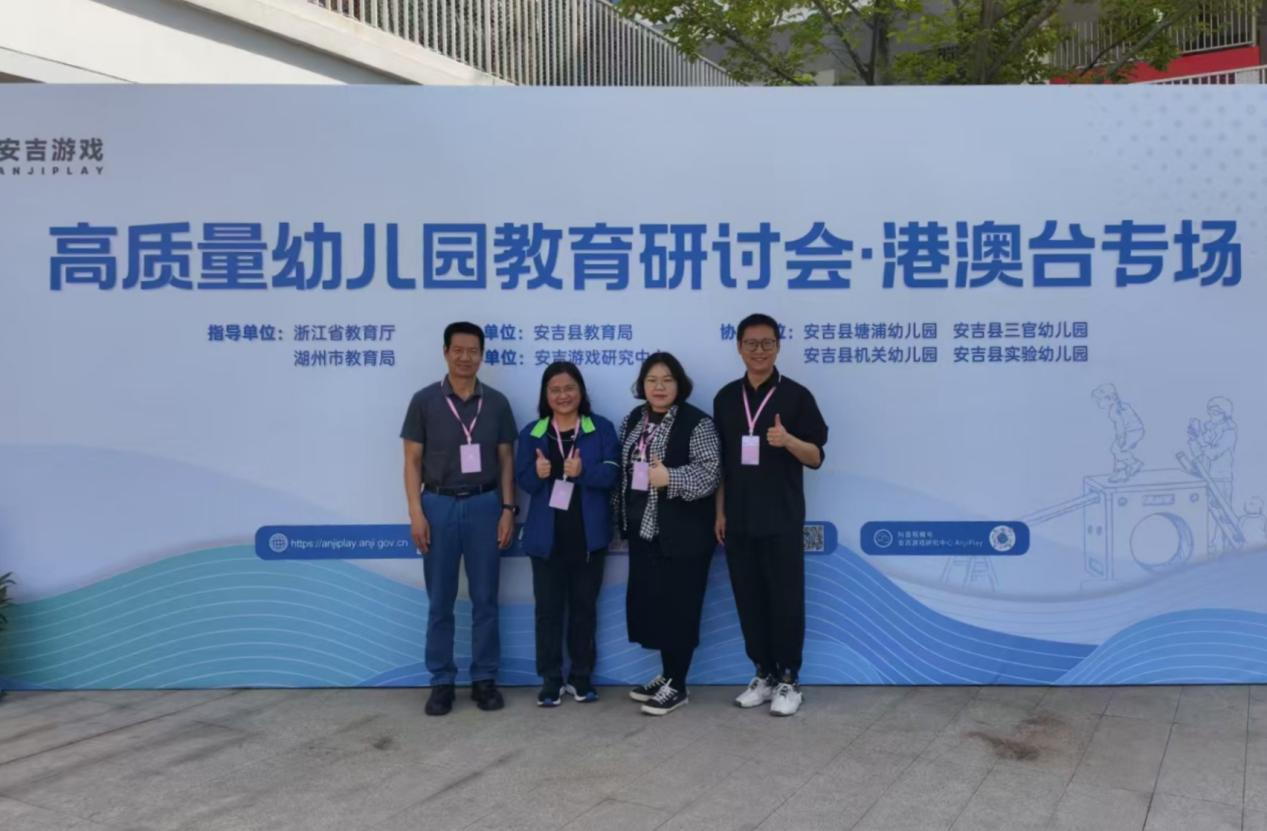 2025年4月14日至15日,广州华商学院教师教育学院张博副院长,学前教育系童淑美博士、范倩倩老师、周剑铭老师一行赴浙江省湖州市安吉县,参加由安吉县教育局主办,安吉游戏研究中心承办的首届“高质量幼儿园教育研讨会·港澳台专场”活动。