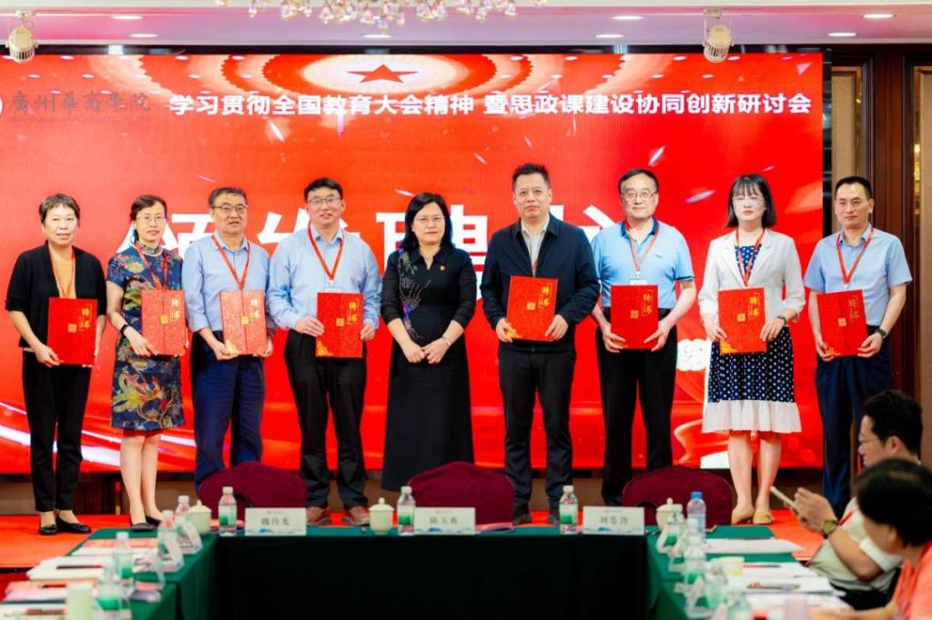 广州华商学院马克思主义学院聘请广东省内8位专家学者为学院客座教授,陈玉欢书记为受聘专家颁发聘书。