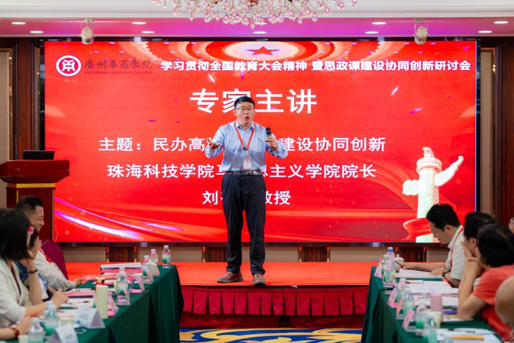 2025年4月18日,由广东省高校思政课区域协同创新中心、暨南大学马克思主义学院主办,广州华商学院马克思主义学院承办,珠海科技学院、广州华立学院、私立华联学院、潮汕职业技术学院协办的“学习贯彻全国教育大会精神暨思政课建设协同创新研讨会”在广州太阳城大酒店成功举办。广东省内多所院校的专家学者齐聚一堂,围绕思政课建设协同创新与高质量发展展开深入交流和深刻探讨。