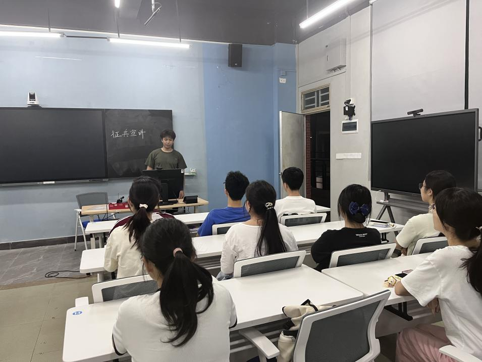 为响应2025年征兵工作号召,切实推进征兵工作落实,广州华商学院教师教育学院积极开展校园征兵宣传活动,鼓励学生投身国防事业,为国家的安全和发展贡献力量。2025年4月24日晚上,教师教育学院组织退役大学生士兵于励志楼开展以“青春铸军魂,热血报祖国”为主题的征兵宣讲会,会议由教师教育学院征兵负责人张雅芬老师主持。
