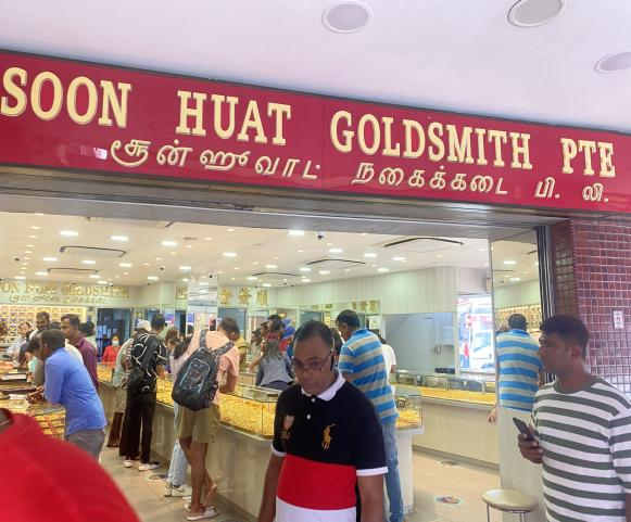小印度(Little India)的金铺街(Serangoon Road)是印度文化的象征性场域。街道两侧的金饰店橱窗内陈列着繁复雕花的黄金首饰,印度家庭常在此选购婚礼与节日饰品。教师们走进一家百年金铺,店主演示了传统“昆丹工艺”(Kundan)——将未切割宝石嵌入金箔,这一技艺已被列入新加坡非物质文化遗产。