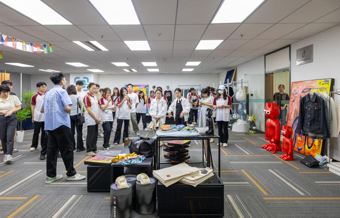师生在园区入驻企业办公区近距离观摩企业实际工作流程,与企业负责人交流行业趋势与岗位需求,进一步明晰职业发展方向。同时,师生通过案例展示与数据可视化平台,系统学习新经济企业的数字化转型路径,并对跨境电商、供应链管理等专业领域展开讨论。