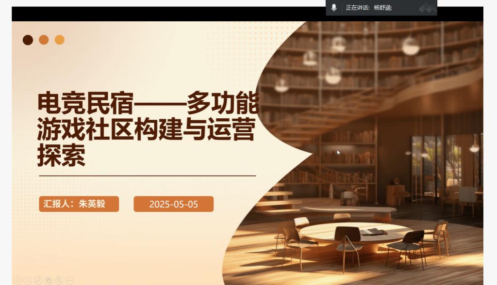 外国语学院两个项目负责人冷子涵和朱英毅依次通过PPT的形式进行展示,分别详细汇报了项目自启动以来的进展情况。冷子涵团队的心柑甜愿项目展示涵盖了项目基本内容、已取得的阶段性成果、项目执行过程中遇到的问题及解决方案等;朱英毅团队探讨了电竞民宿项目的定位、社区功能区规划、运营问题、困难分析及后续发展计划。两位负责人展示内容详实,逻辑清晰。