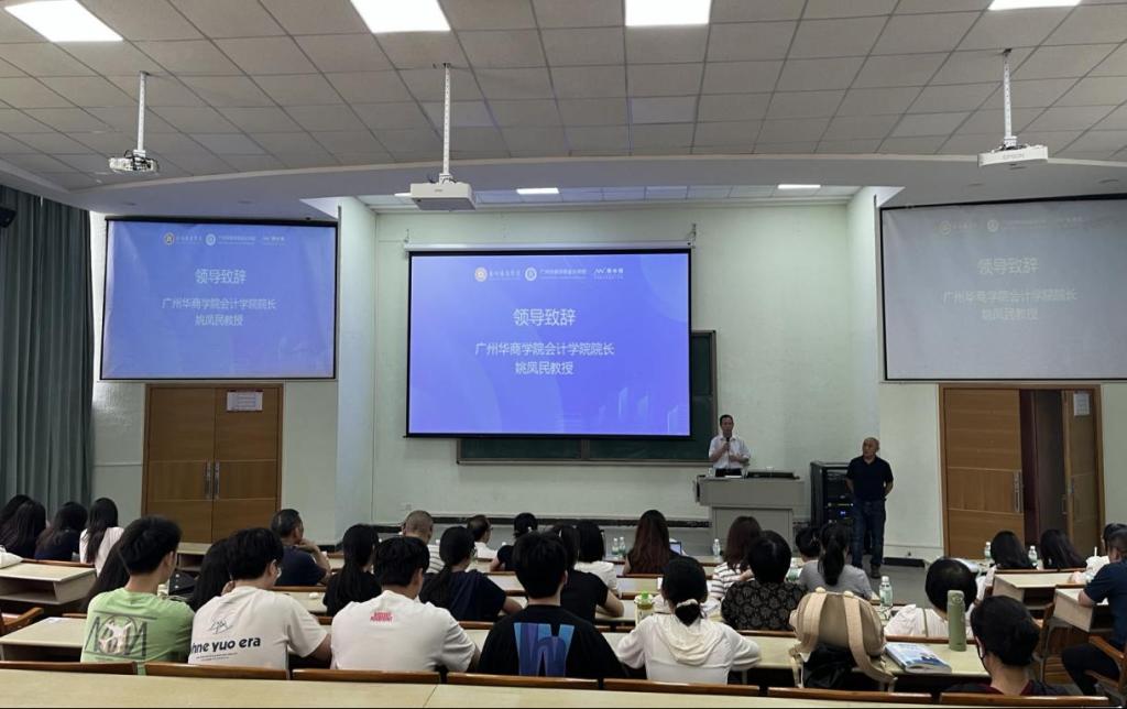广州华商学院会计学院院长姚凤民教授致辞。他向各位嘉宾的到来表示最热烈的欢迎和最衷心的感谢,希望老师和同学们把握交流契机,积极与嘉宾互动交流,学习宝贵知识,汲取先进经验,不断提升自身的专业素养和学术水平。