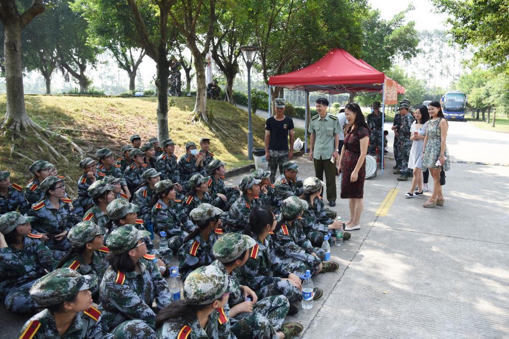 烈日当空,在连队教官的严格训练下,同学们汗流浃背。但大家的热情不减,精神抖擞地完成教官安排的训练项目,连营方队整齐、步伐矫健、口令准确、声音嘹亮。各位领导老师每到一处,都受到了新生们的热烈欢迎。新生们整齐划一、高亢洪亮的“老师好”响彻军训场上空。走访过程中,王德高主任和邱会锋副主任代表我系全体师生向承训教官致谢,亲切询问了新生军训的情况,鼓励学生认真完成军训任务。