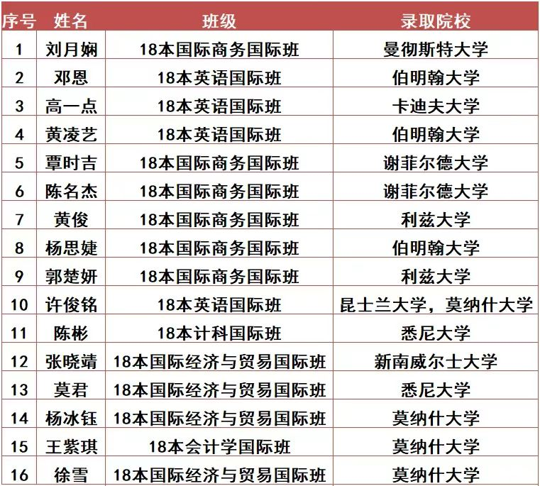 华商国际学院2022届毕业生考研再传捷报,截至发稿为止,“3+1”中英双学位国际班及“2+2”中澳双学位国际班的30名应届毕业生中已有16名被海外知名高校录取,升学率为53.3%。在此对这些同学表示热烈的祝贺。