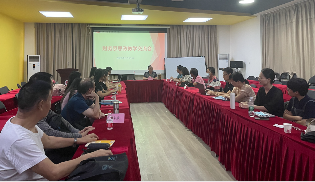 会议由财务系主任陈云教授主持,他介绍了本次课程思政交流会的意义所在,他指出举办“课程思政教学交流会”是我系全面落实立德树人根本任务、推进全员全过程全方位育人的举措之一。我系教师要进一步强化思想认识,认真总结归纳,在教学内容、教学方法上结合“课程思政”的理念,精心打磨所授课程,并将思政元素融入每一门专业课程,引导学生成长成才。