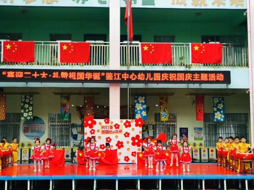 正值国庆,为继承和发扬中华优秀传统文化和中华传统美德,让幼儿充分感受国庆氛围,激发其爱国之情,鉴江街道中心幼儿园以“华商鉴幼携手,喜迎二十大,礼赞祖国华诞”为主题、平定镇中心幼儿园以“庆祝国庆,迎二十大,华商平幼,帮扶共赢”为主题,结合幼儿园特色开展国庆活动,其中包括气韵生动的中国舞、刚劲有力的舞狮开场、气势恢宏的打击鼓乐、热情激昂的朗诵节目、活泼有趣的手势舞、刚柔并济的功夫扇舞蹈等。